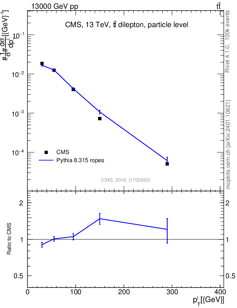 Lines: data, pythia8 8.315 ropes |