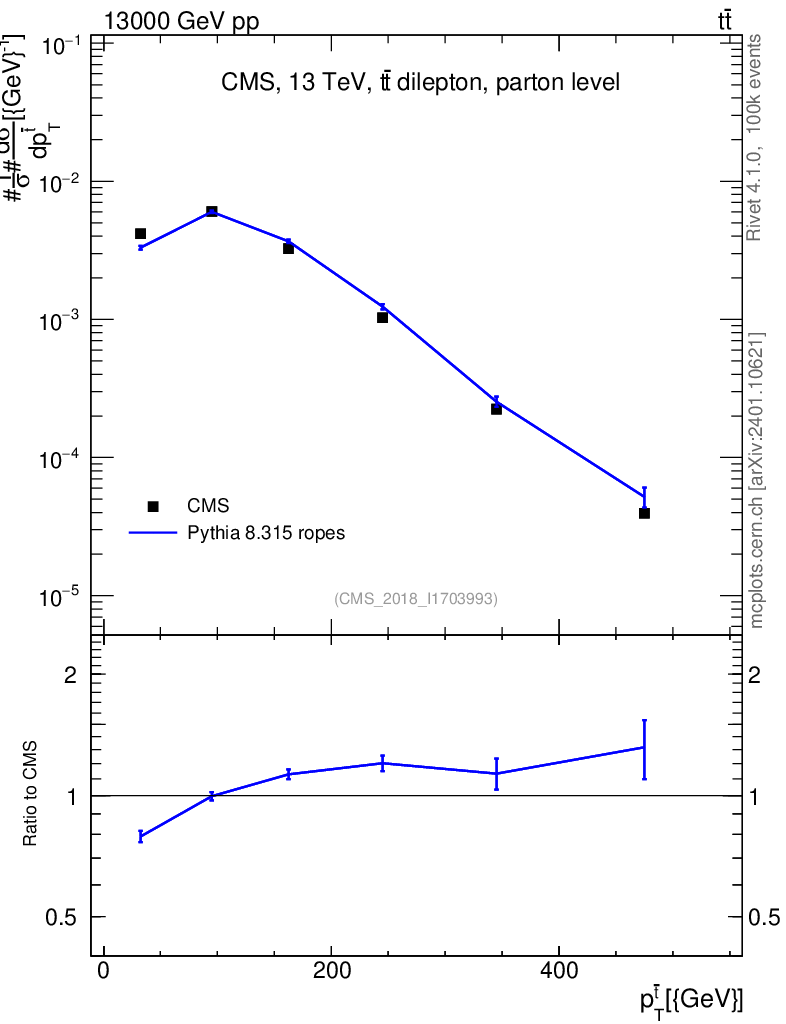 Lines: data, pythia8 8.315 ropes |