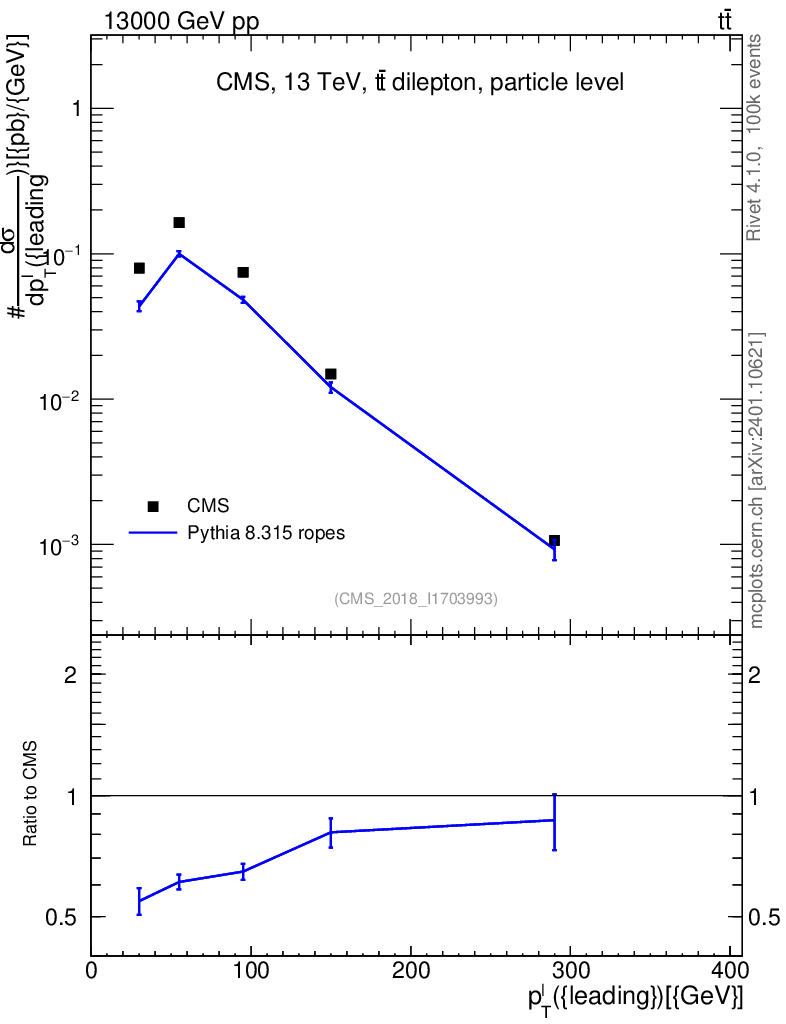 Lines: data, pythia8 8.315 ropes |