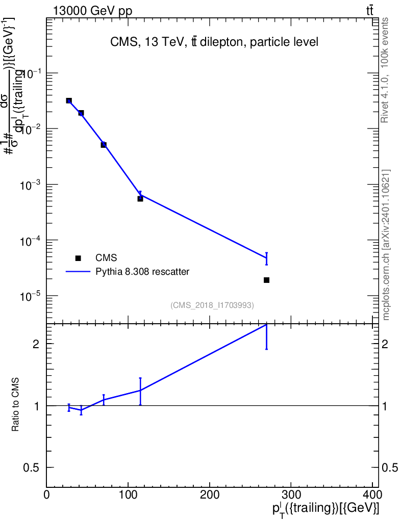 Lines: data, pythia8 8.308 rescatter |
