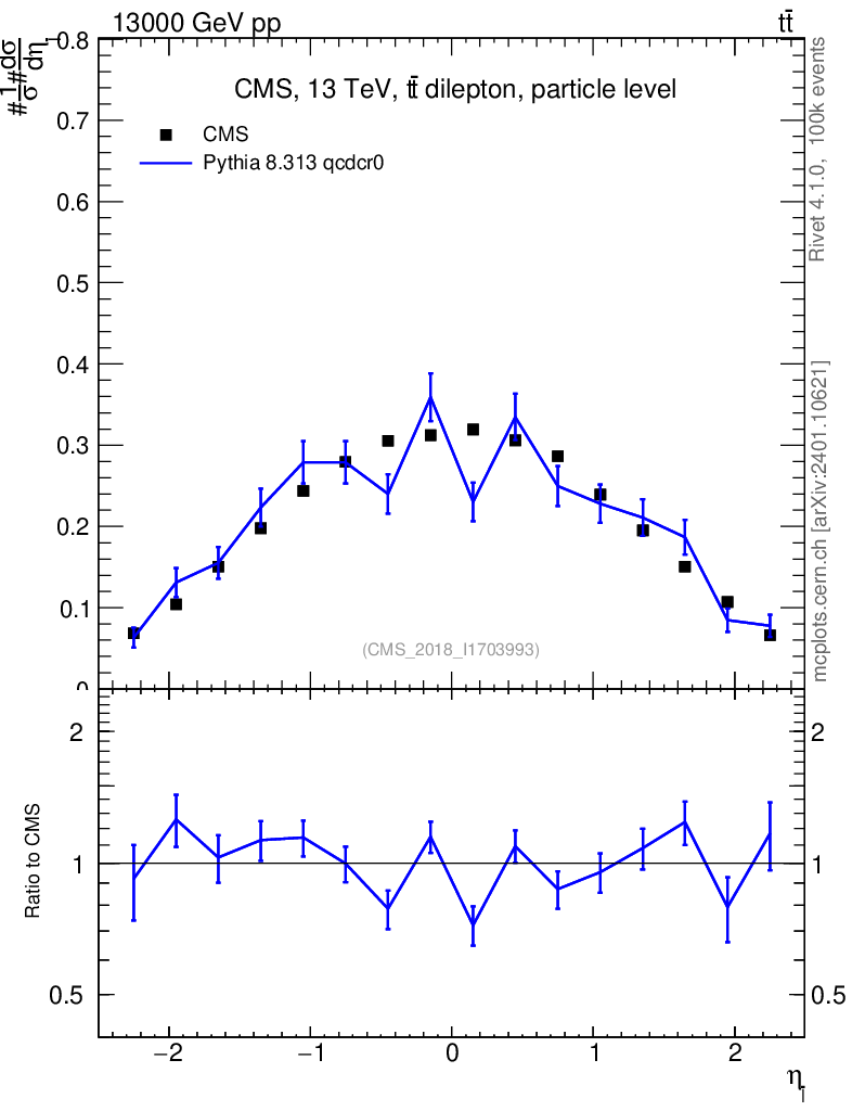 Lines: data, pythia8 8.313 qcdcr0 |