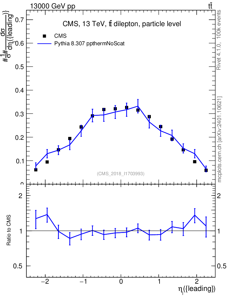 Lines: data, pythia8 8.307 ppthermNoScat |