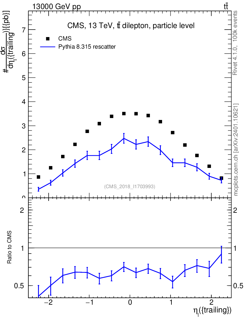 Lines: data, pythia8 8.315 rescatter |