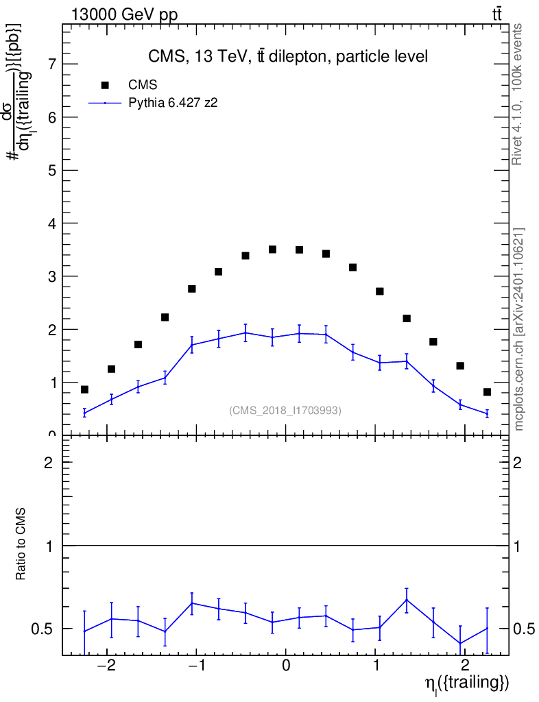 Lines: data, pythia6 6.427 z2 |