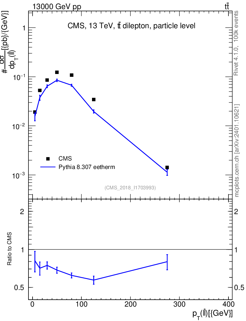 Lines: data, pythia8 8.307 eetherm |
