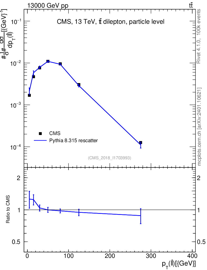 Lines: data, pythia8 8.315 rescatter |