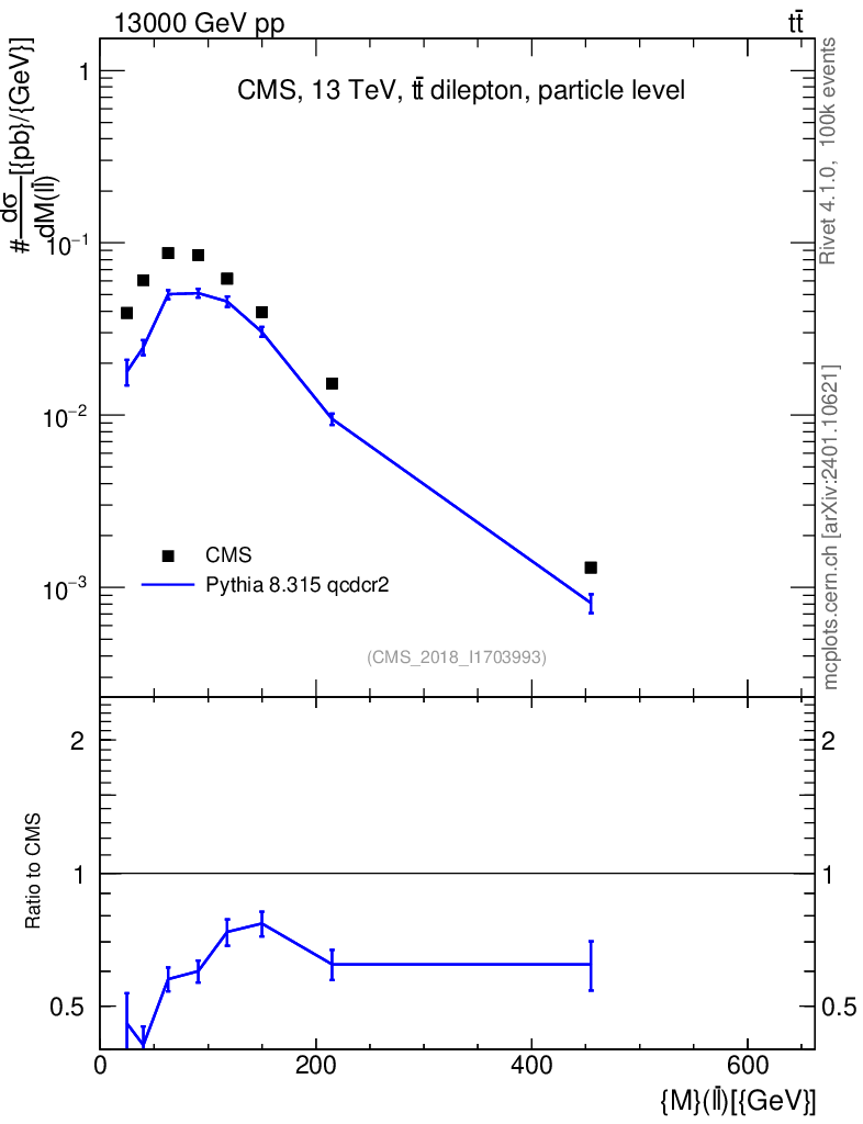 Lines: data, pythia8 8.315 qcdcr2 |