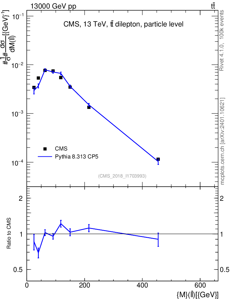 Lines: data, pythia8 8.313 CP5 |