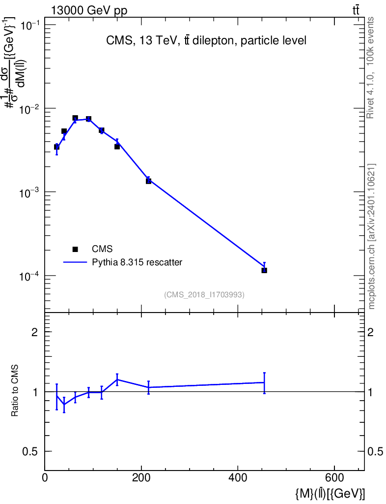 Lines: data, pythia8 8.315 rescatter |