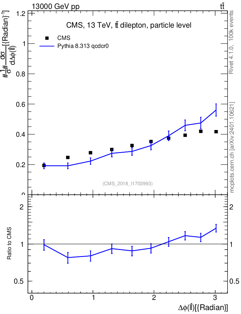 Lines: data, pythia8 8.313 qcdcr0 |