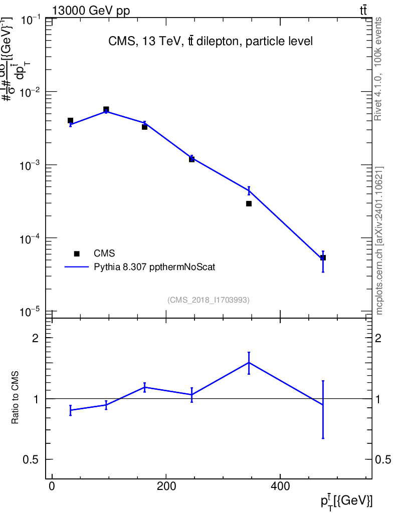 Lines: data, pythia8 8.307 ppthermNoScat |