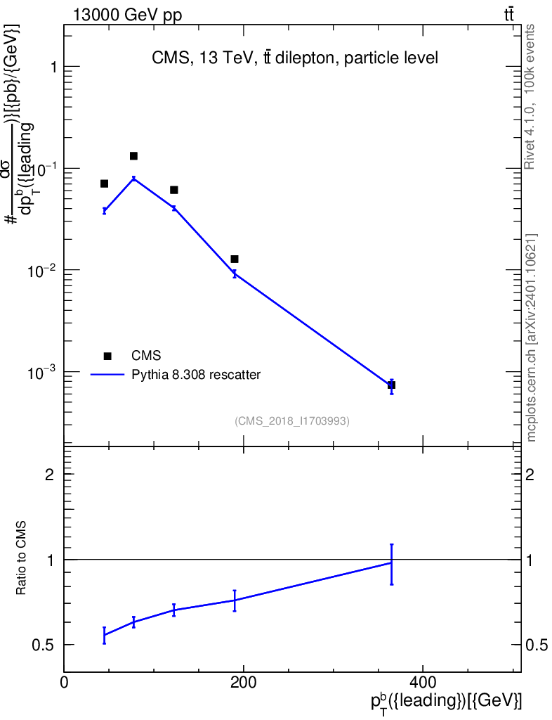 Lines: data, pythia8 8.308 rescatter |