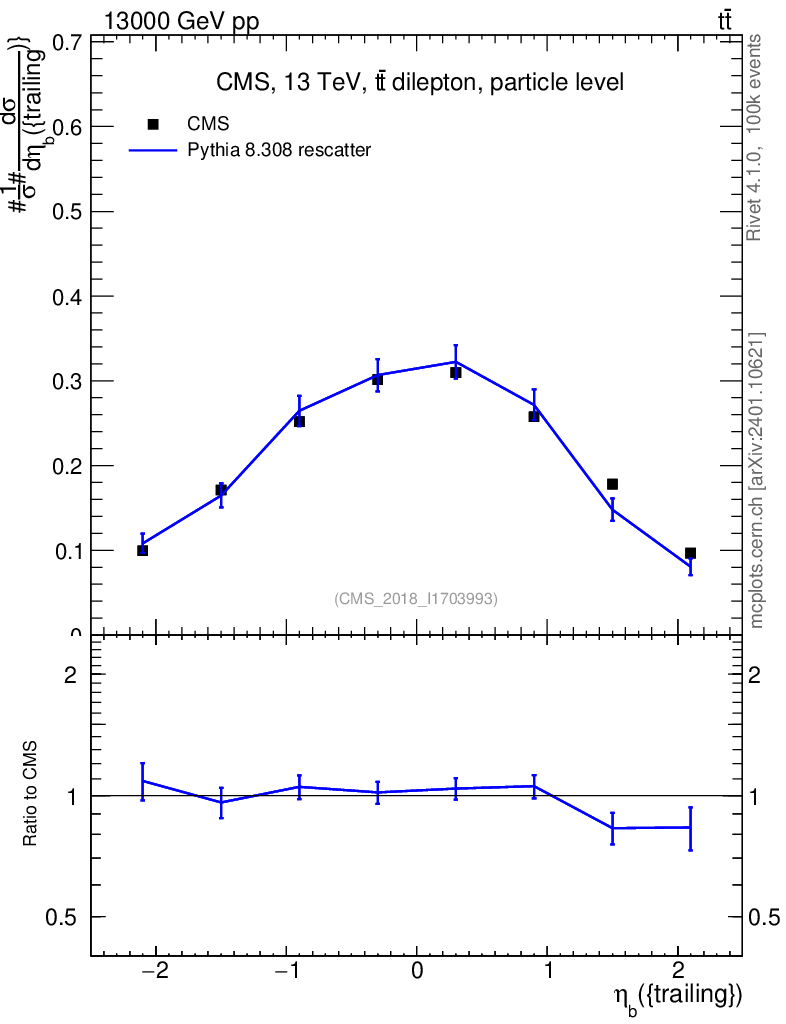 Lines: data, pythia8 8.308 rescatter |