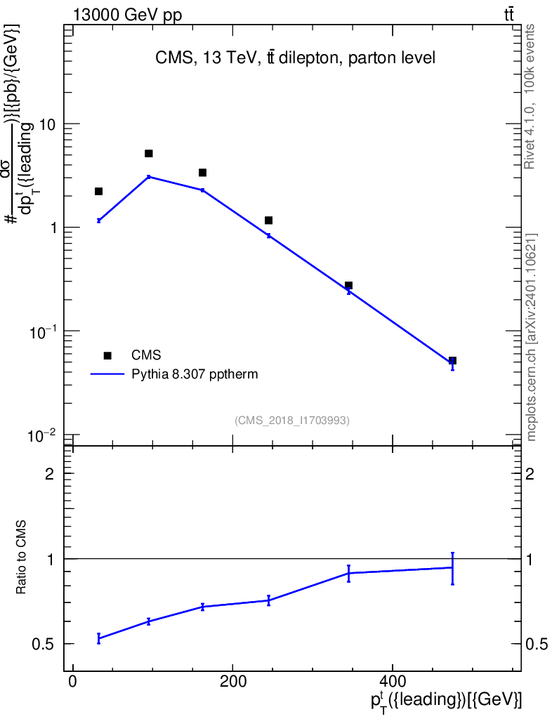 Lines: data, pythia8 8.307 pptherm |