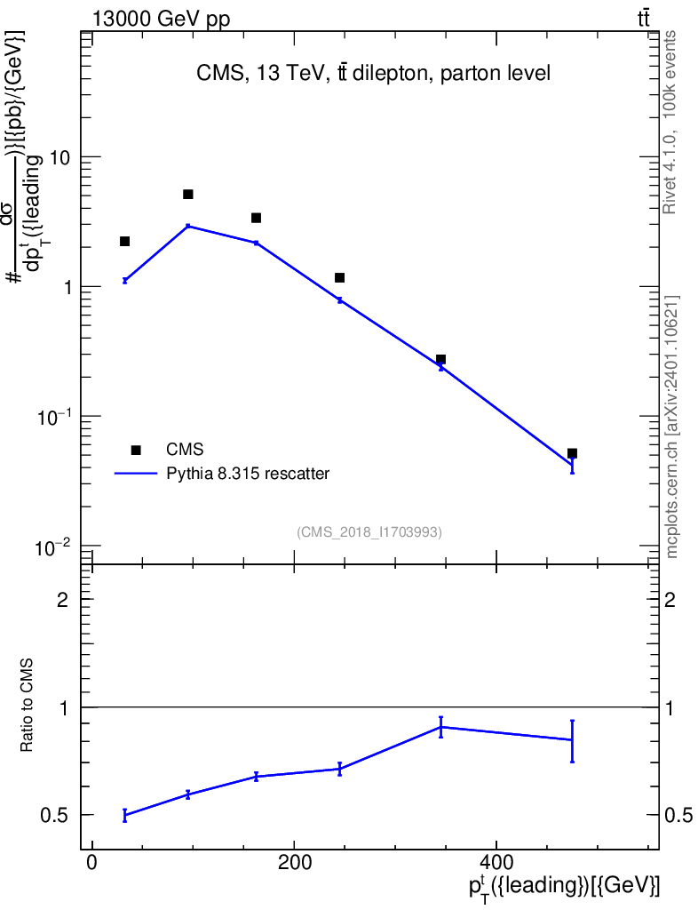 Lines: data, pythia8 8.315 rescatter |