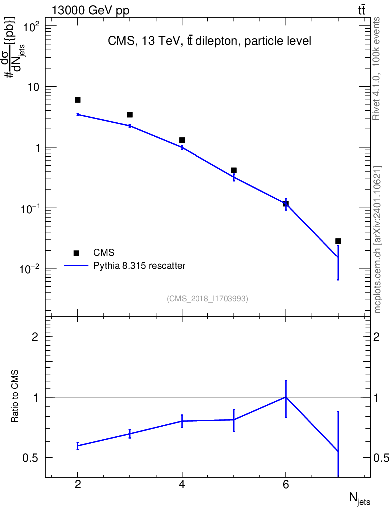 Lines: data, pythia8 8.315 rescatter |