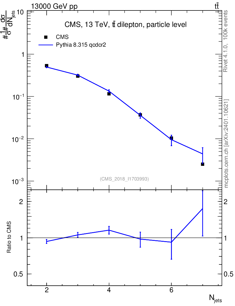 Lines: data, pythia8 8.315 qcdcr2 |
