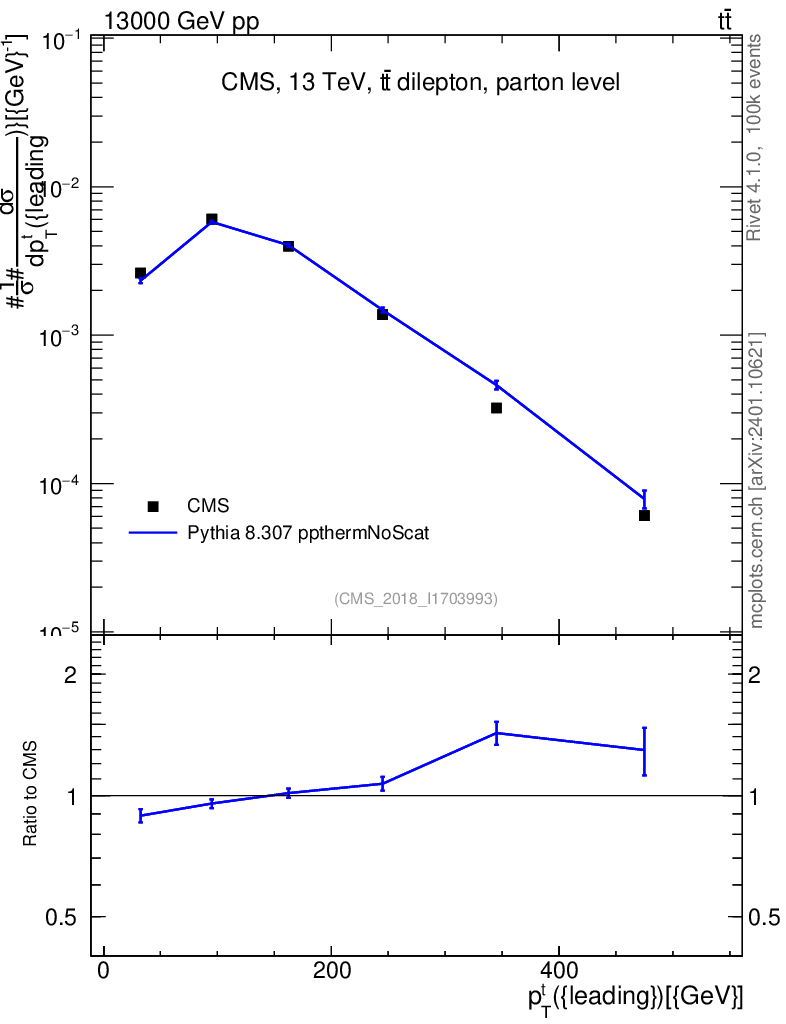 Lines: data, pythia8 8.307 ppthermNoScat |