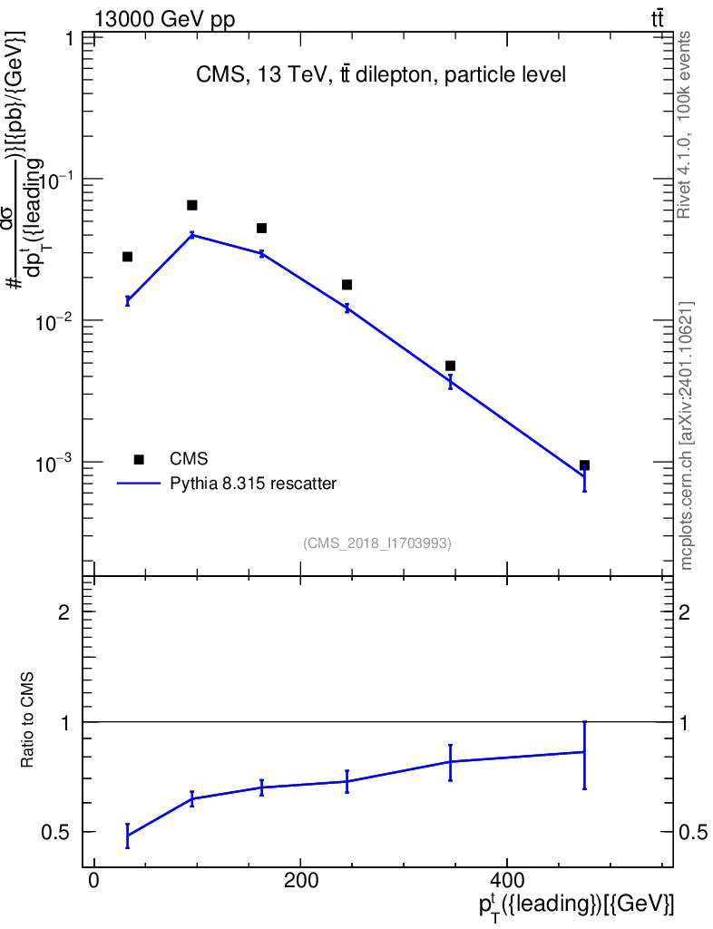 Lines: data, pythia8 8.315 rescatter |