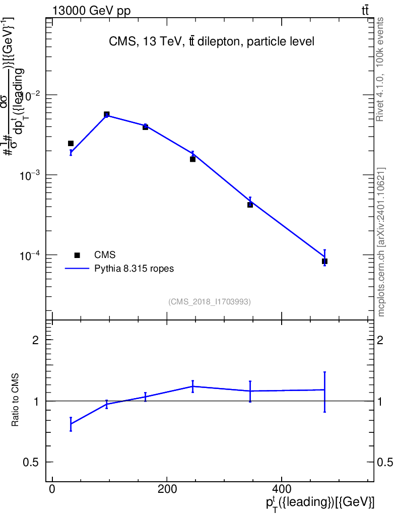 Lines: data, pythia8 8.315 ropes |