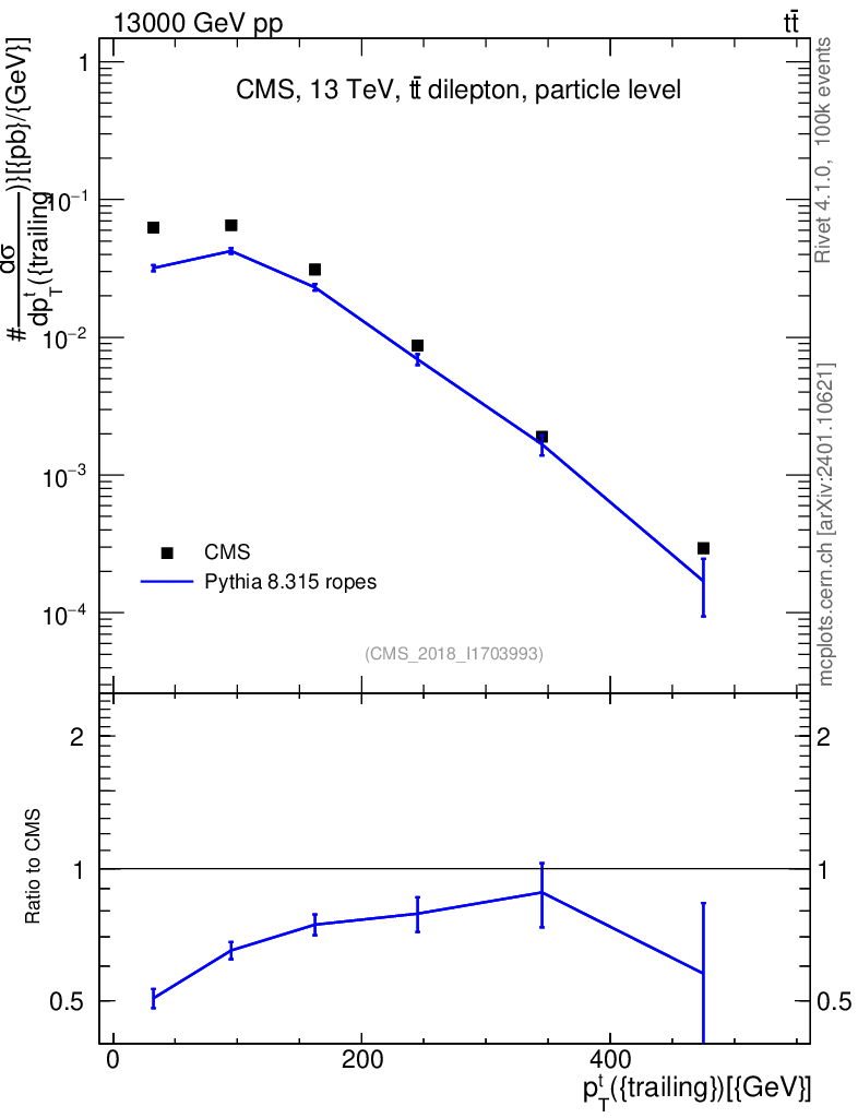 Lines: data, pythia8 8.315 ropes |