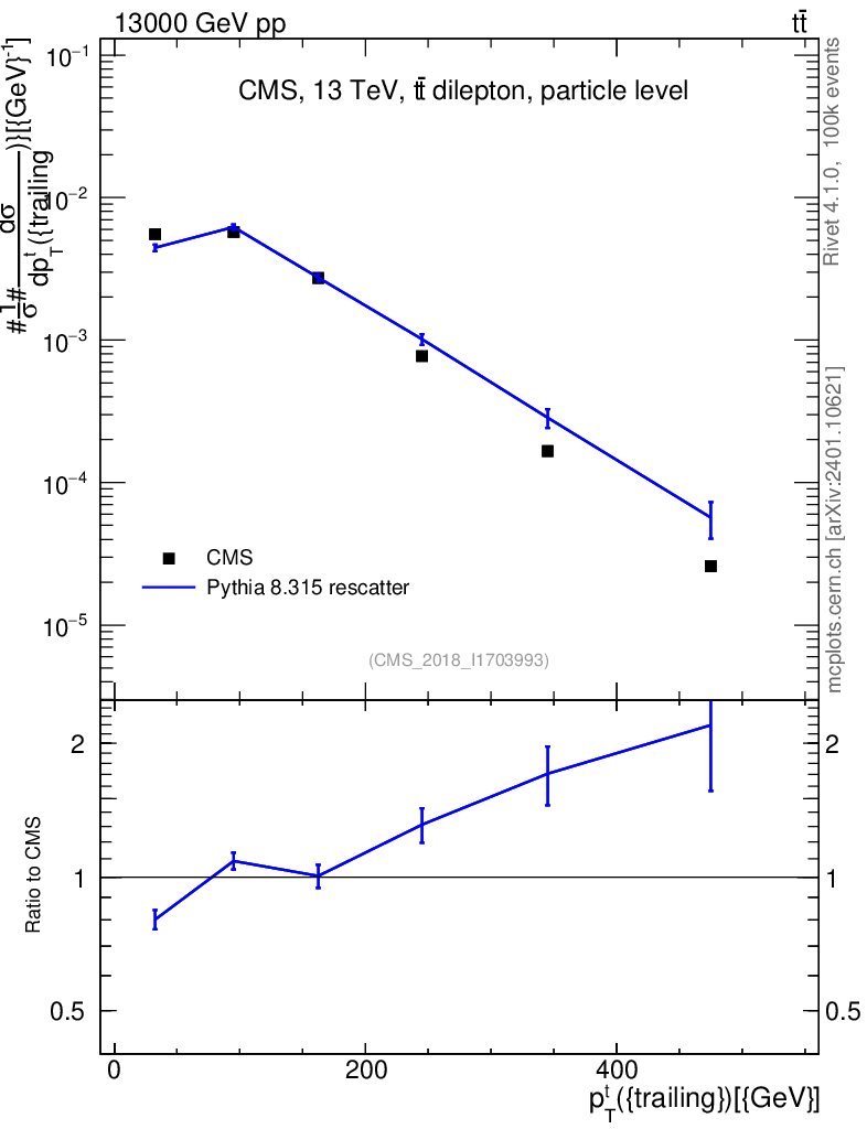 Lines: data, pythia8 8.315 rescatter |