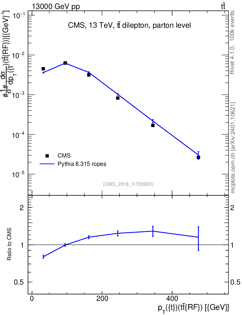 Lines: data, pythia8 8.315 ropes |