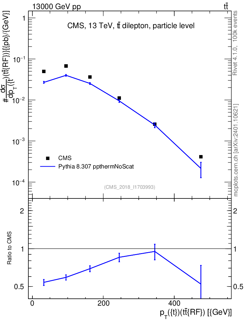 Lines: data, pythia8 8.307 ppthermNoScat |