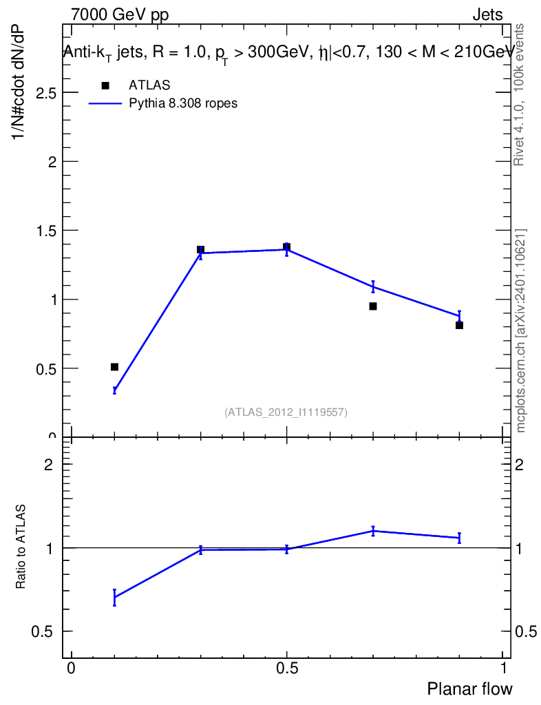 Lines: data, pythia8 8.308 ropes |
