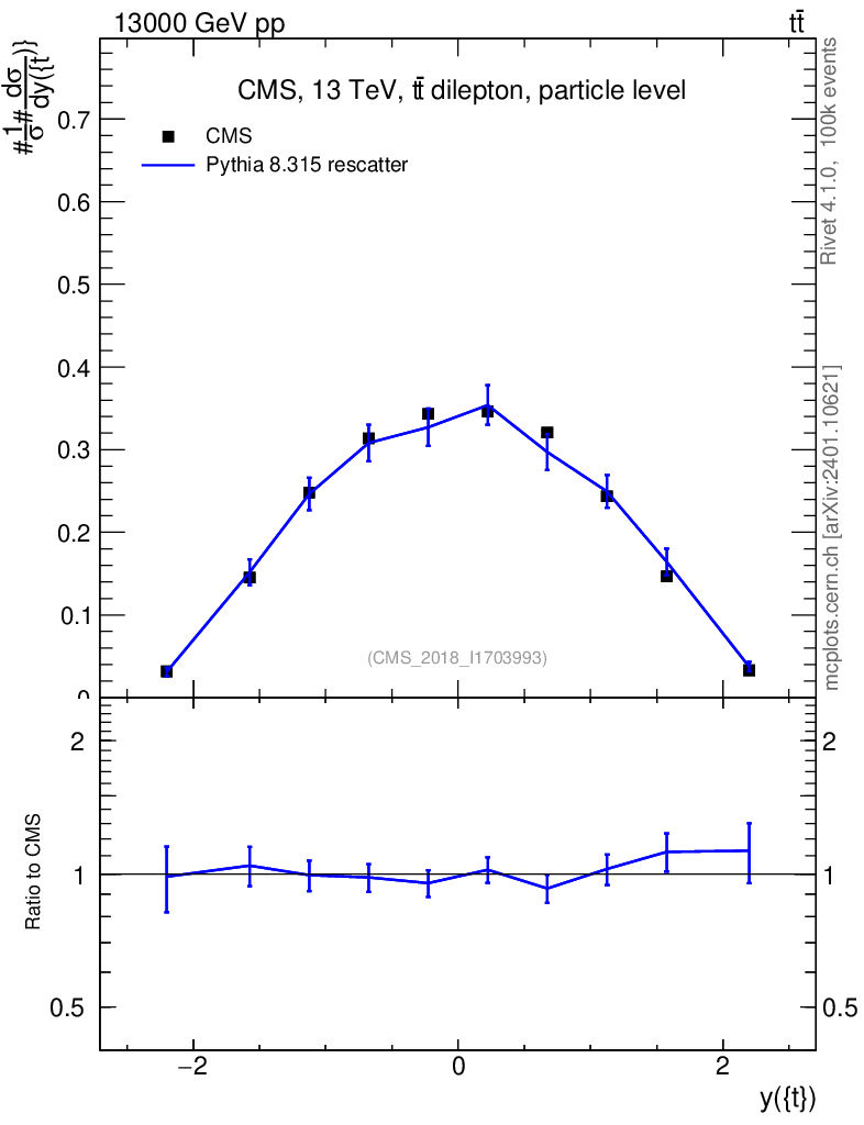 Lines: data, pythia8 8.315 rescatter |