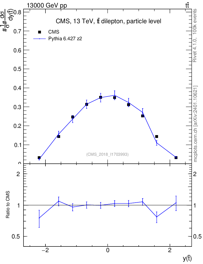 Lines: data, pythia6 6.427 z2 |