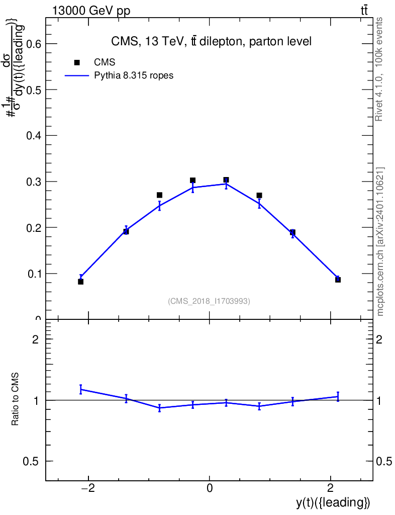 Lines: data, pythia8 8.315 ropes |