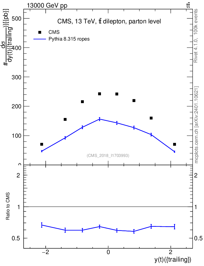 Lines: data, pythia8 8.315 ropes |