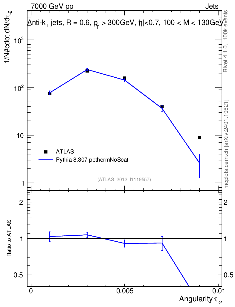Lines: data, pythia8 8.307 ppthermNoScat |