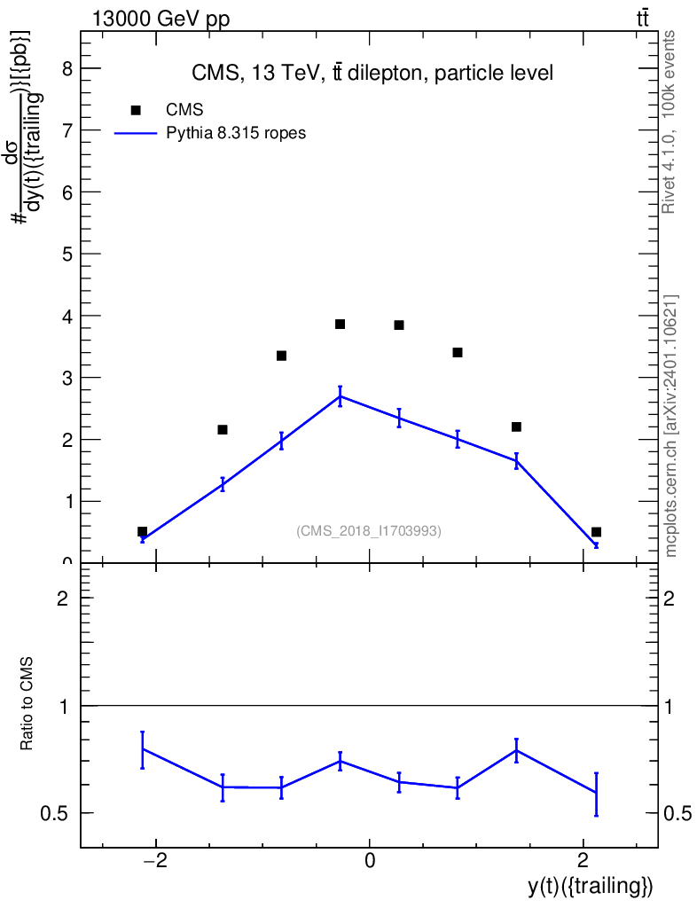 Lines: data, pythia8 8.315 ropes |