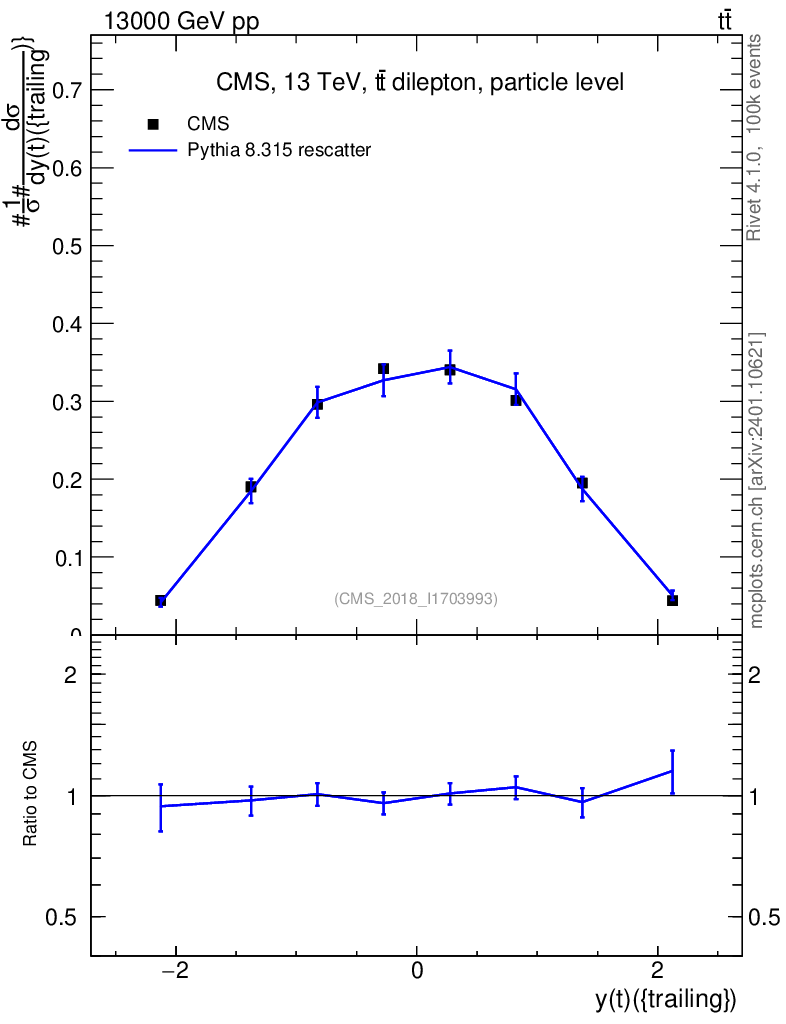 Lines: data, pythia8 8.315 rescatter |