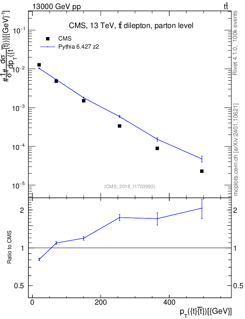 Lines: data, pythia6 6.427 z2 |