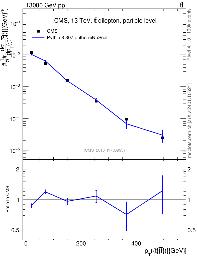 Lines: data, pythia8 8.307 ppthermNoScat |