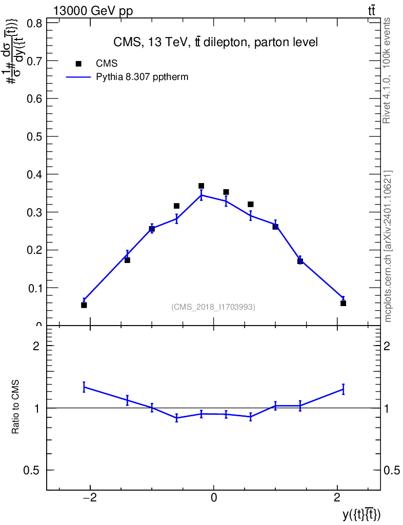 Lines: data, pythia8 8.307 pptherm |