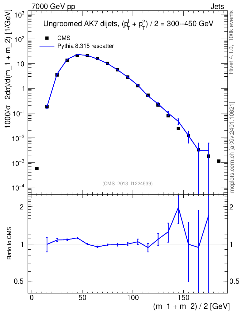 Lines: data, pythia8 8.315 rescatter |