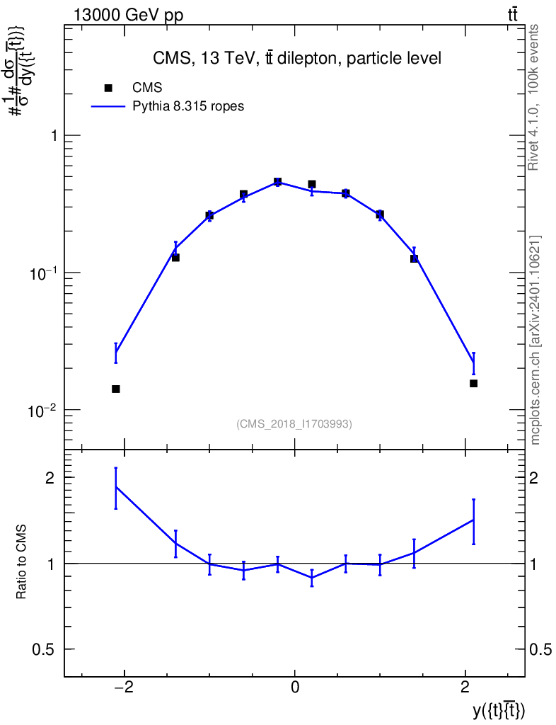 Lines: data, pythia8 8.315 ropes |