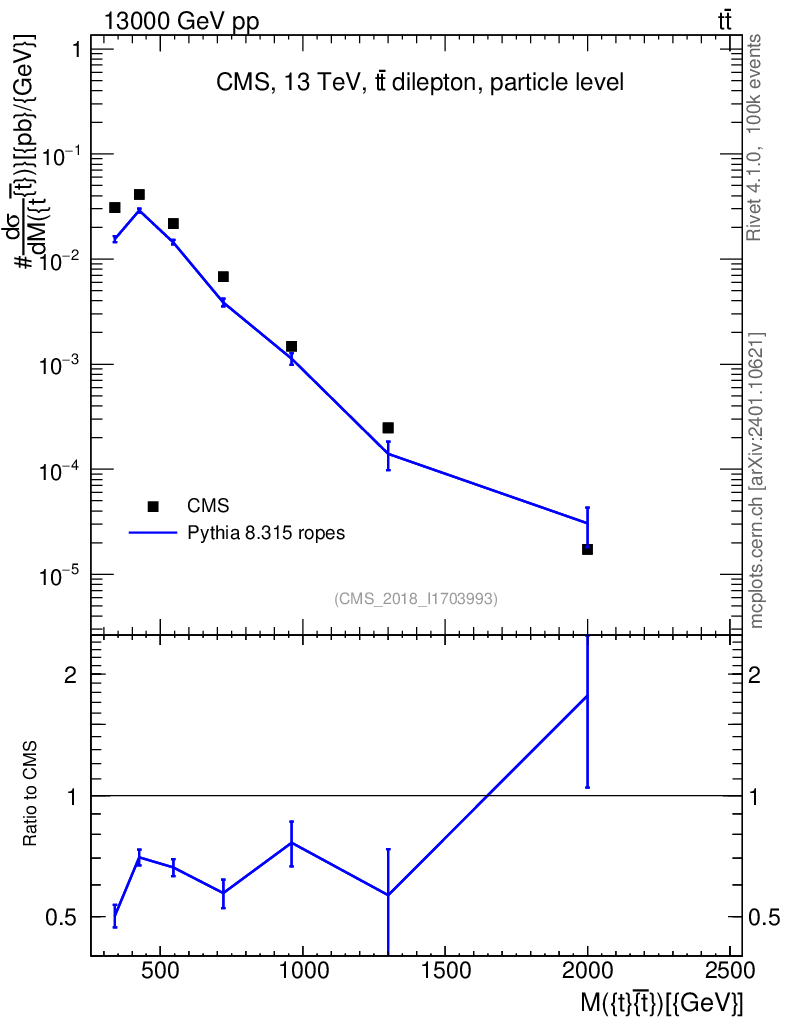 Lines: data, pythia8 8.315 ropes |