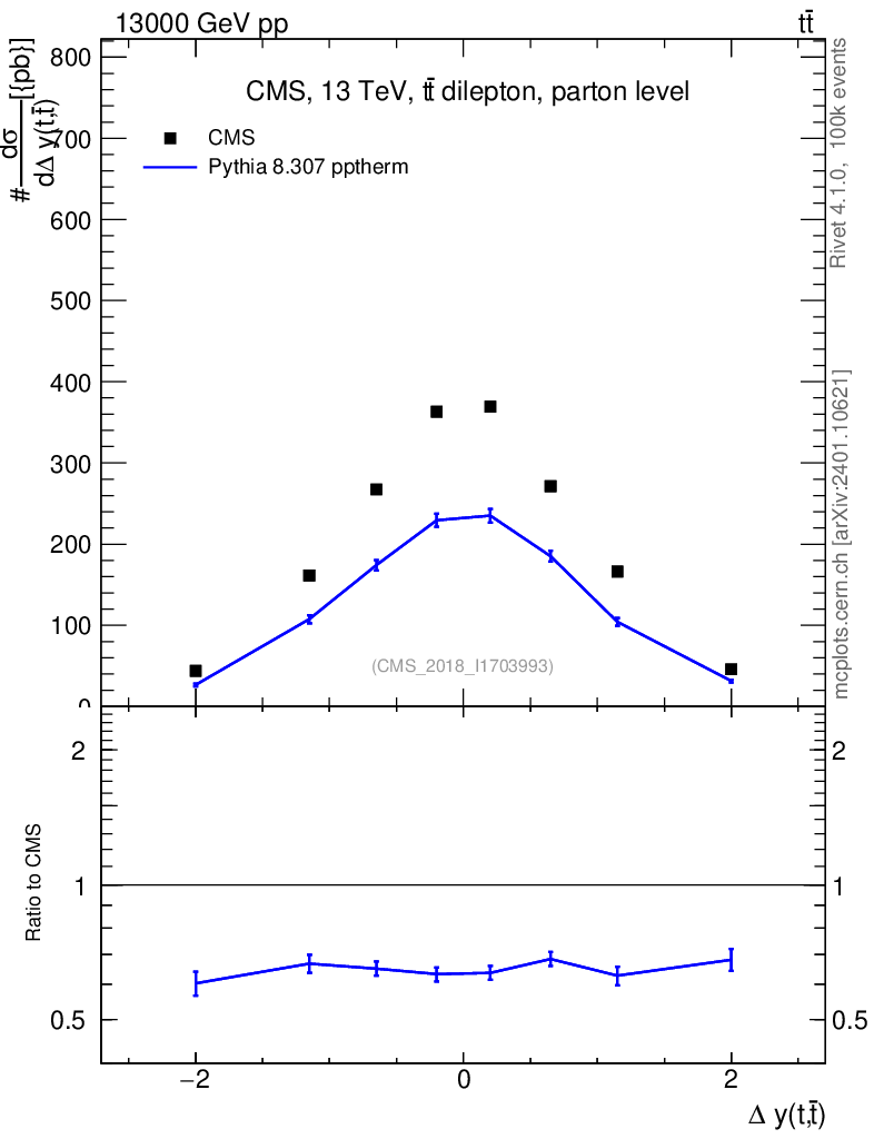 Lines: data, pythia8 8.307 pptherm |