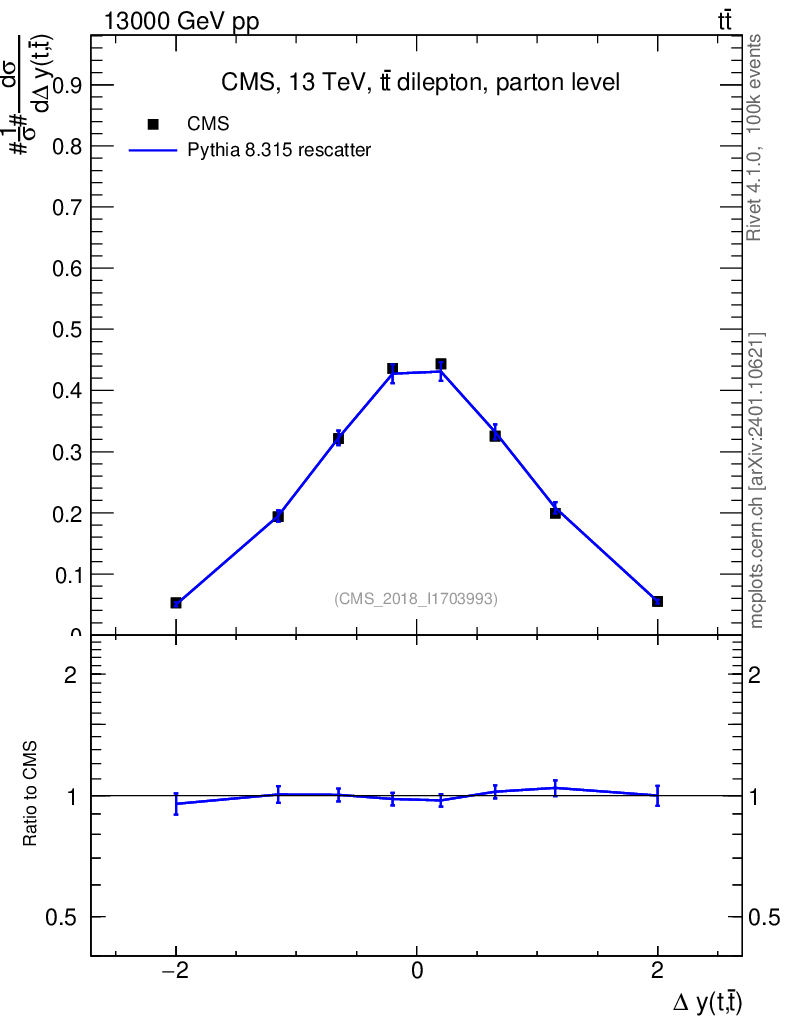 Lines: data, pythia8 8.315 rescatter |
