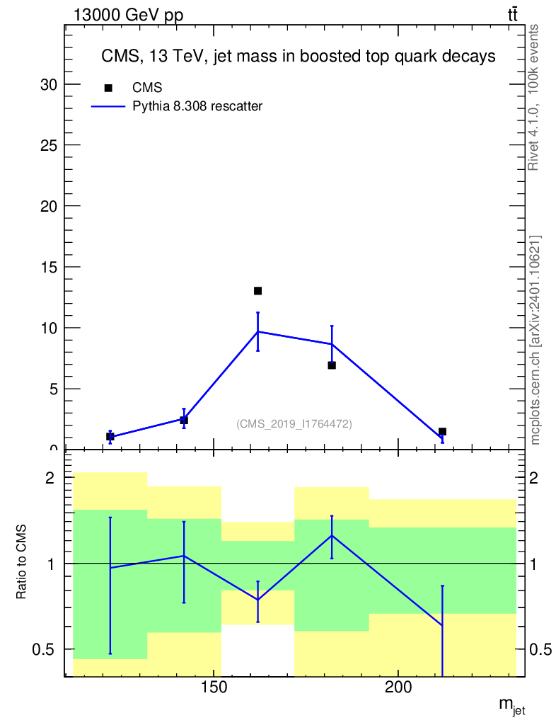 Lines: data, pythia8 8.308 rescatter |