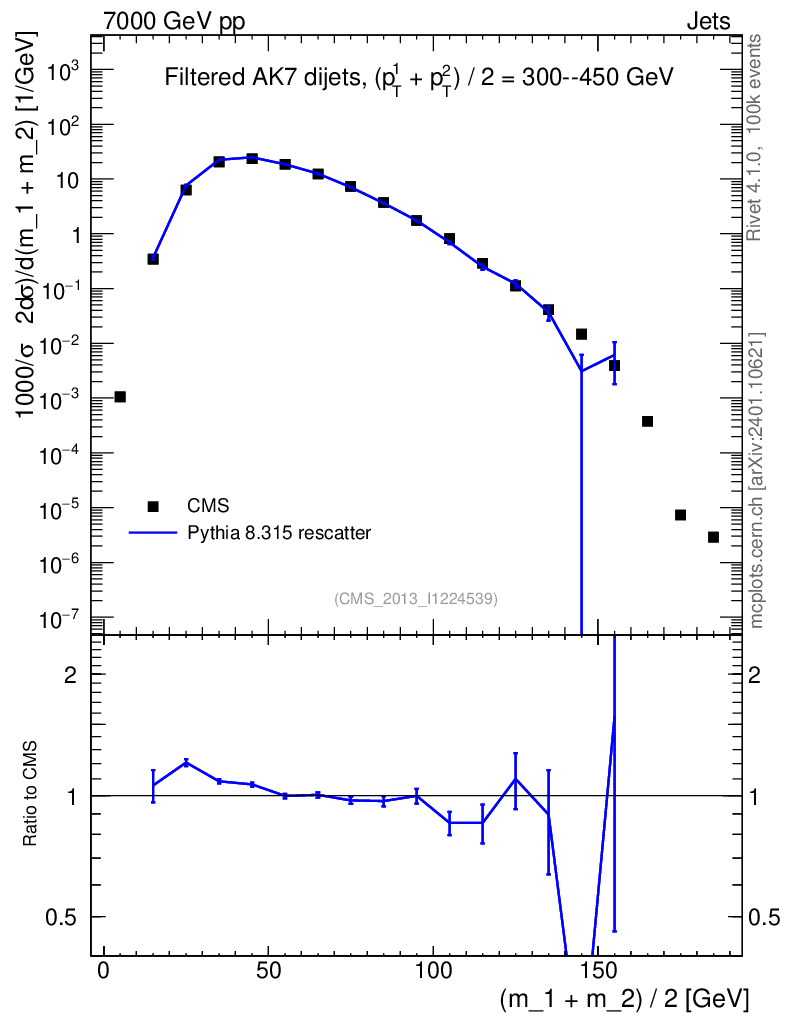 Lines: data, pythia8 8.315 rescatter |