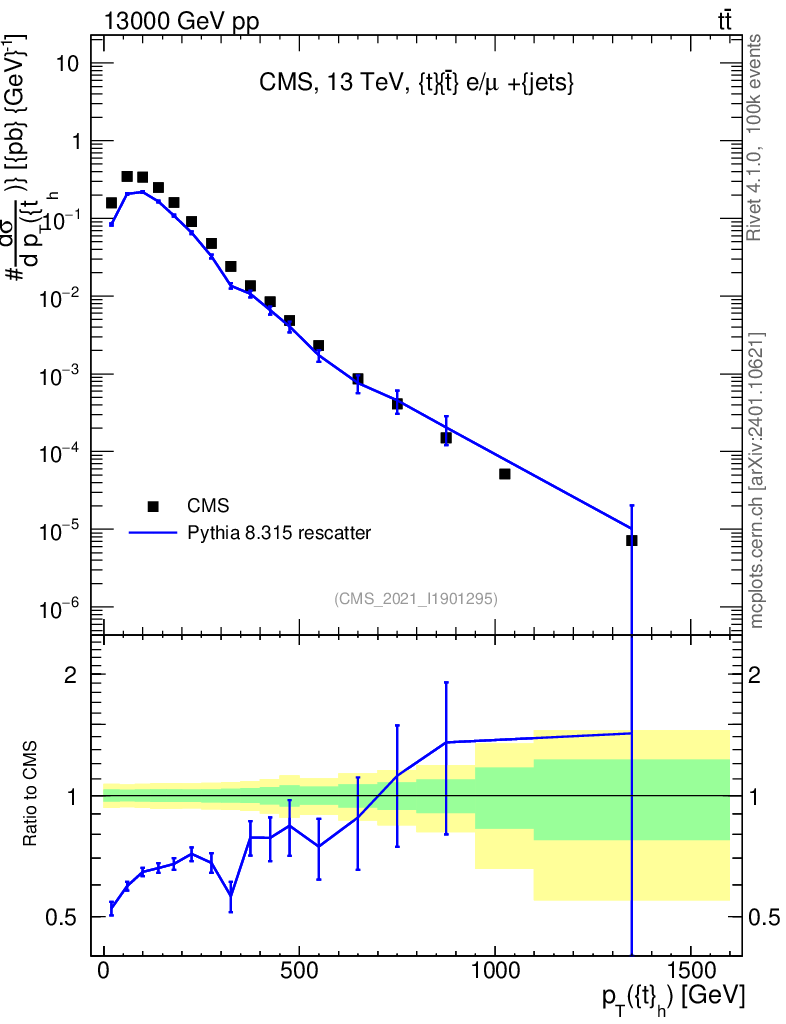 Lines: data, pythia8 8.315 rescatter |