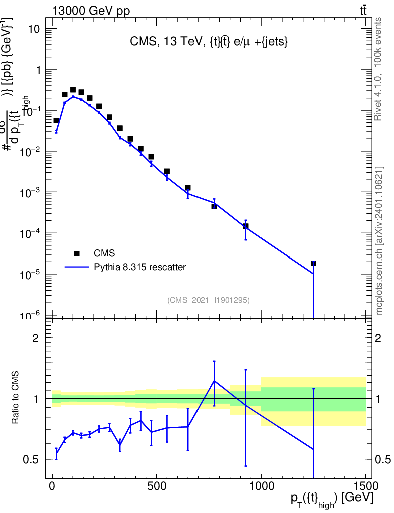 Lines: data, pythia8 8.315 rescatter |
