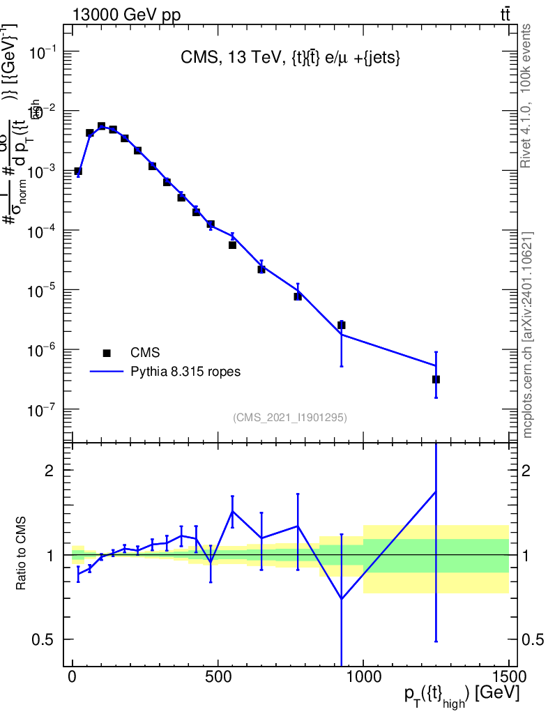 Lines: data, pythia8 8.315 ropes |