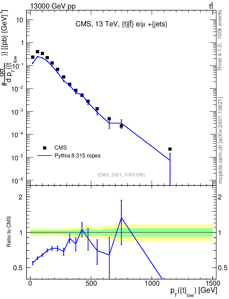 Lines: data, pythia8 8.315 ropes |